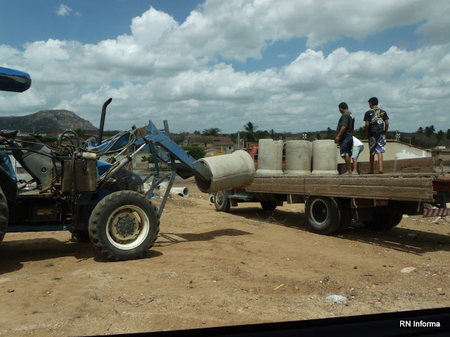 "..neste fim de semana o que chamou a atenção foi à retirada das manilhas de concretoque vinham sendo usadas no saneamento básico da cidade. Detalhe, o saneamento básico ainda não foi concluído.